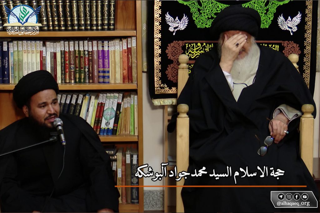 روضه شهادت حضرت زهرا سلام الله علیها در محضر حضرت آیت الله سید علی حسینی میلانی دامت برکاته مدرسه امامت به زبان عربی حجة الاسلام سید محمد جواد آلبوشکه