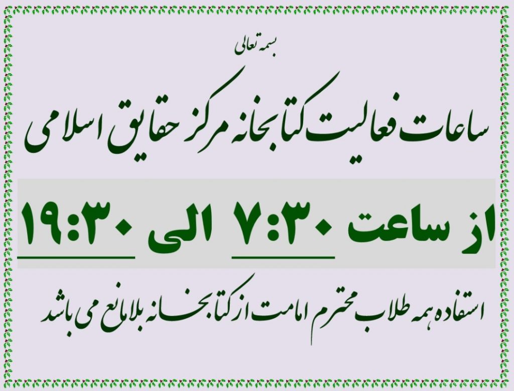 ساعات فعالیت کتابخانه مرکز حقایق اسلامی